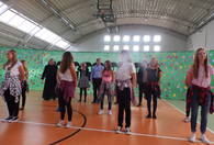 z wdziękiem naśladowali ruchy tancerek. W prezencie od uczniów wszyscy pracownicy szkoły otrzymali czekoladę z serduszkiem, a od samorządu uczniowskiego dyplom ze