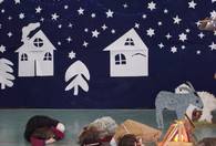 Historia Małego Jezusa, która miała miejsce ponad 2000 lat temu, jest nadal aktualna i żywa. Wigilijna noc – to czas, który rodzi radość i dobroć człowieka, dlatego uczniowie klas 4-6 przedstawili historię „Boga, który stał się człowiekiem i został położony na sianie”. Wszyscy oglądający przenieśli się do uśpionego Betlejem, w którym pasterki i pasterze strzegli swych owiec, a Aniołowie przynieśli im nowinę o tym, iż narodził się Bóg Zbawiciel. Narodziny Mesjasza to strach Heroda o tron, to czas, kiedy groźny, nieprzewidywalny i nikczemny władca knuje spisek. Zgnębiony Herod próbuje zatrzymać swoje berło i koronę, ale niespodziewanie pojawia się Śmierć, która „bierze jego los swoje ręce”. Kacper, Melchior i Baltazar wędrują do Betlejem, by powitać Dziecię na sianie owinięte lichą chustą zdjętą z głowy Maryi. Malutką Dziecinę przywitali również weseli i rozśpiewani pasterze, którzy mimo swojego ubóstwa, złożyli dary Nowonarodzonemu.