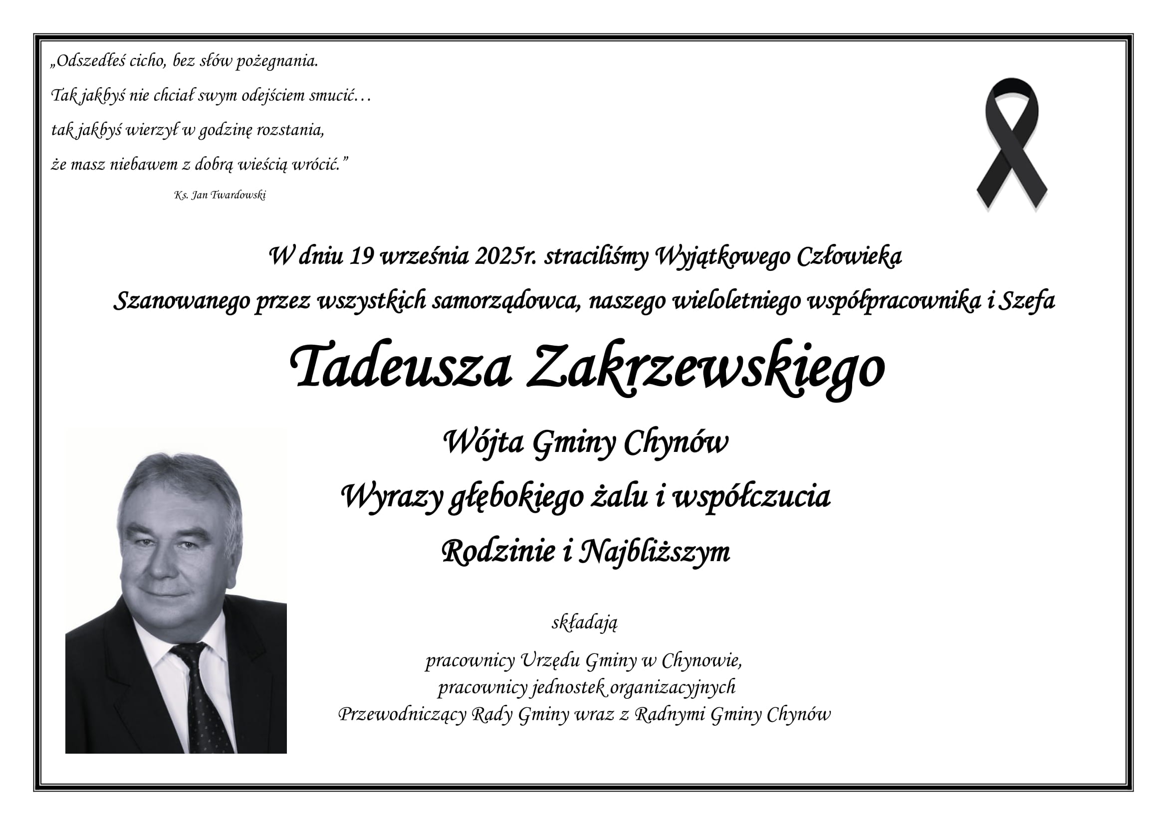 Zmarł Wójt Gminy Chynów Tadeusz Zakrzewski
