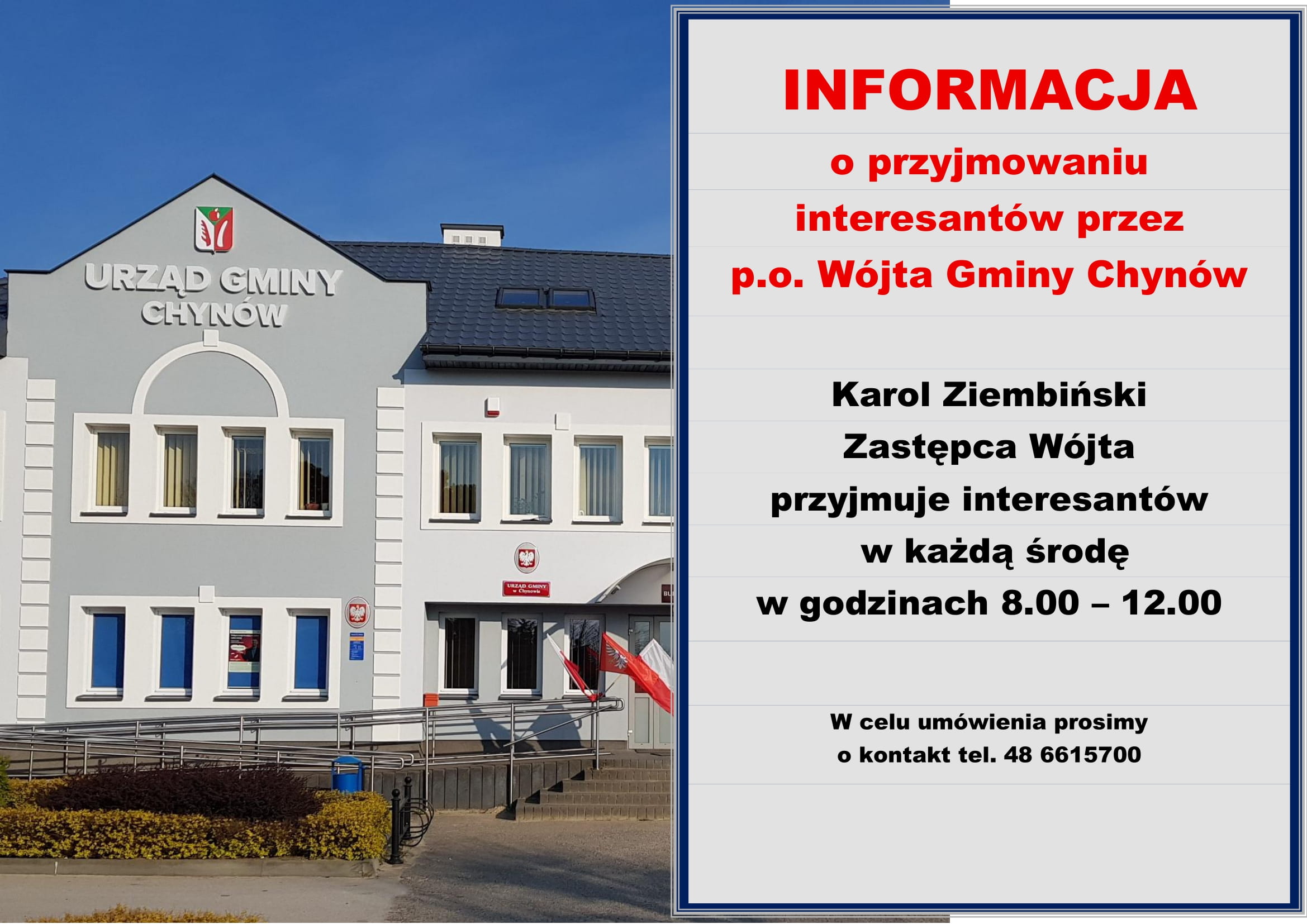 INFORMACJA o przyjmowaniu interesantów przez p.o. Wójta Gminy Chynów