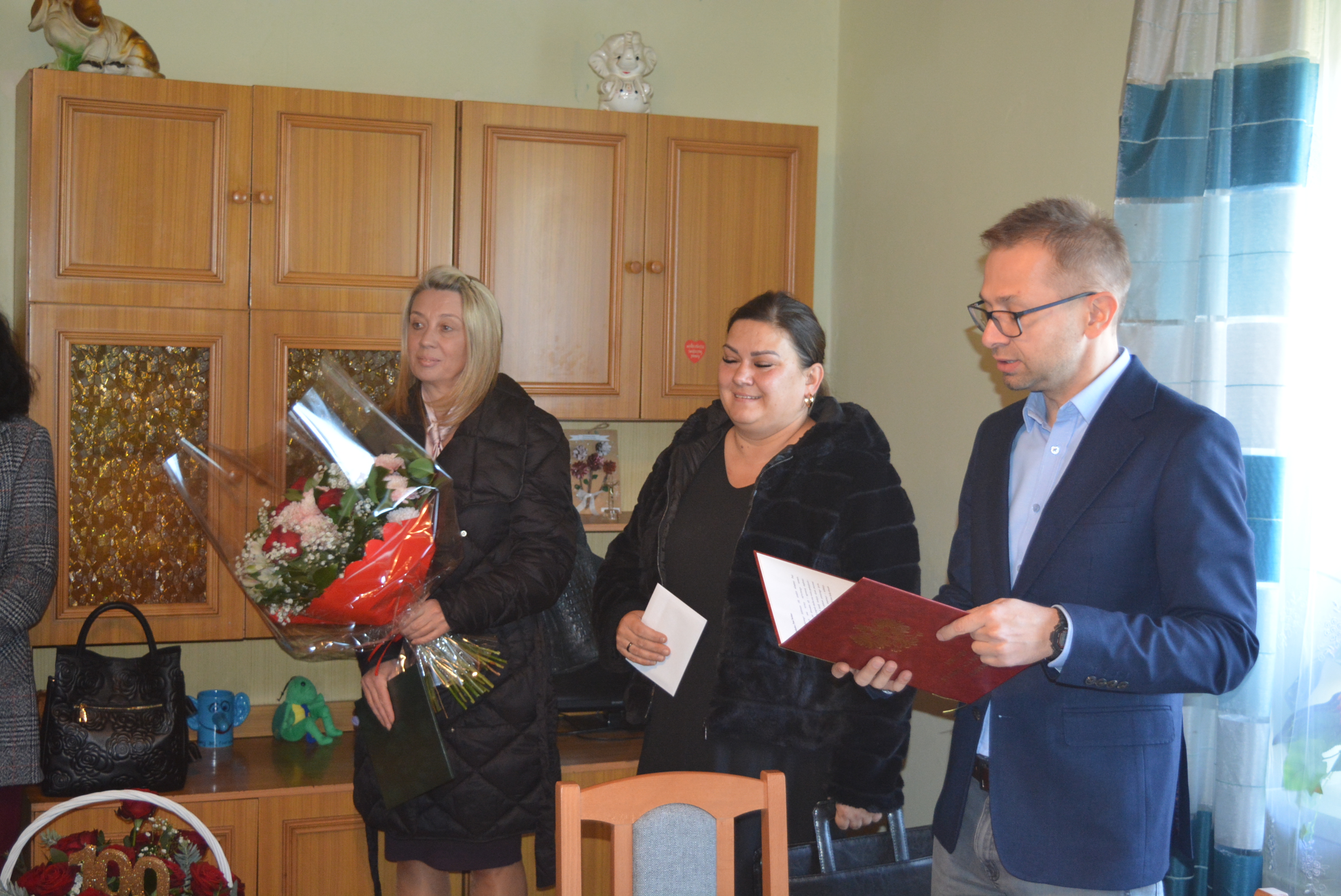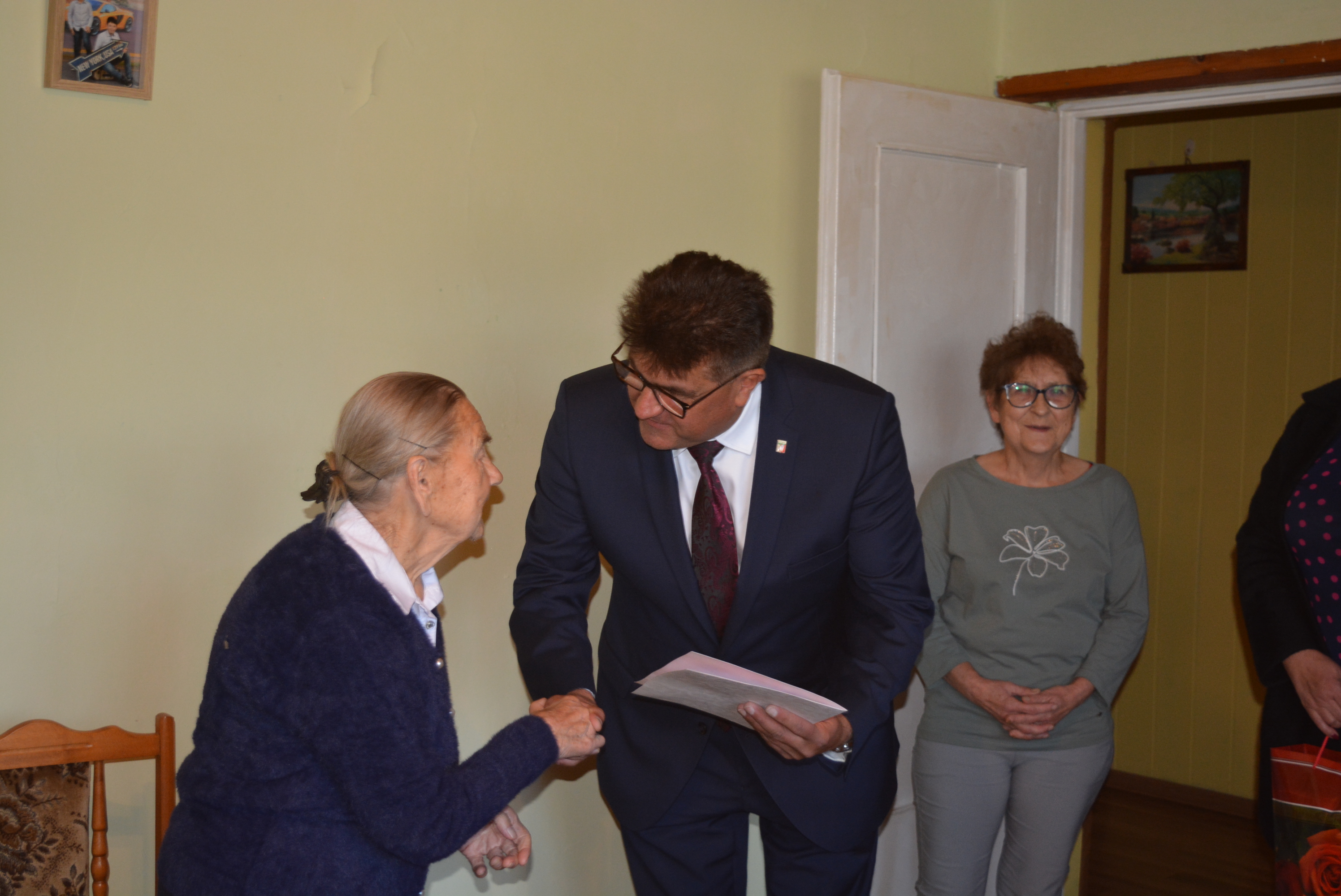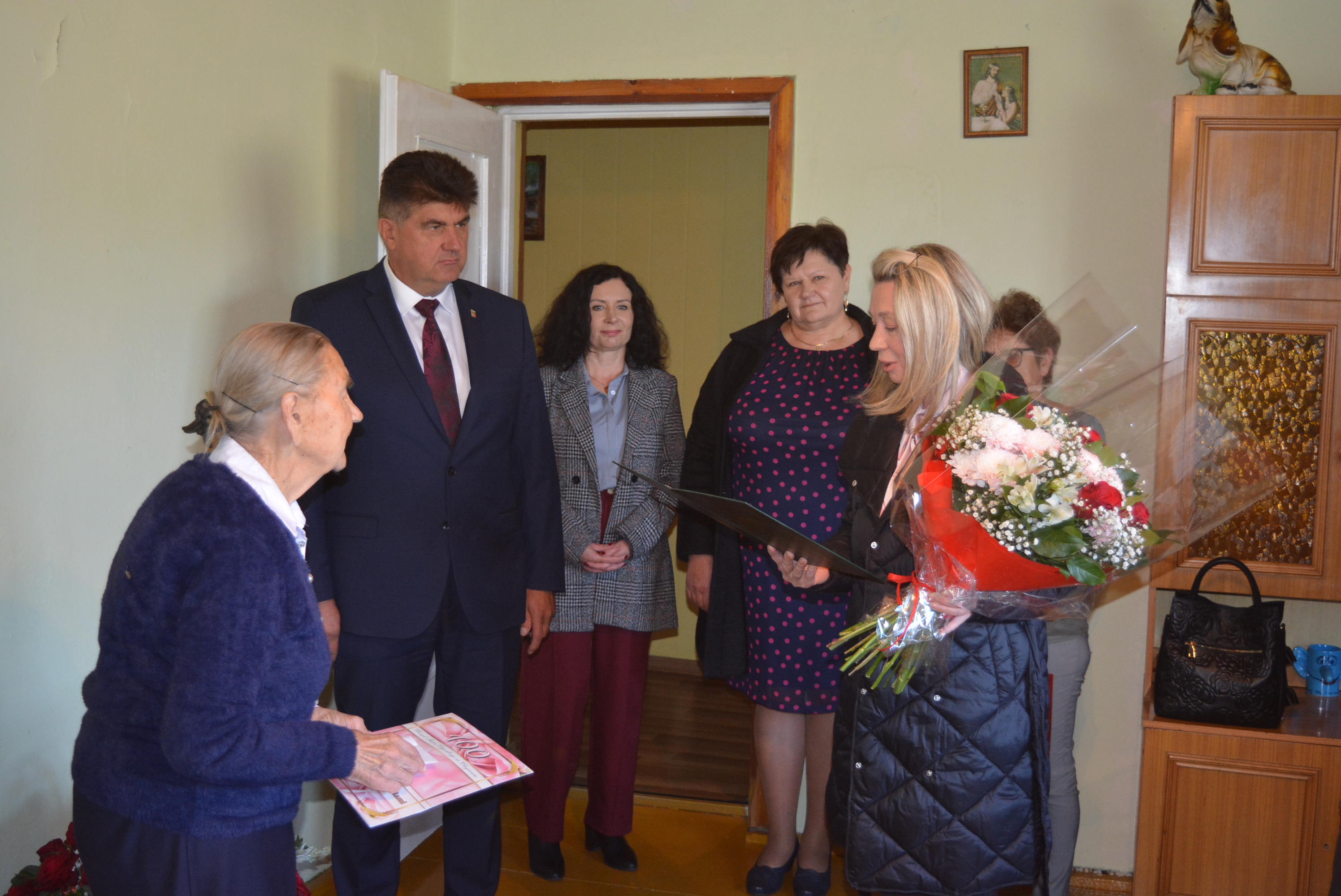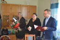 Ten piękny Jubileusz był okazją do złożenia serdecznych życzeń dobrego zdrowia, pomyślności i szczęśliwych chwil na dalsze lata. Zastępca Wójta Gminy Karol Ziembiński, Przewodniczący Rady Gminy Stanisław Mróz, Sekretarz Gminy Teresa Berdyga, Kierownik USC Marzena Czamara, Kierownik GOPS Magdalena Ucinek złożyli życzenia, wręczyli kwiaty wraz z dyplomem okolicznościowym, świadczeniem pieniężnym i drobnym upominkiem.
