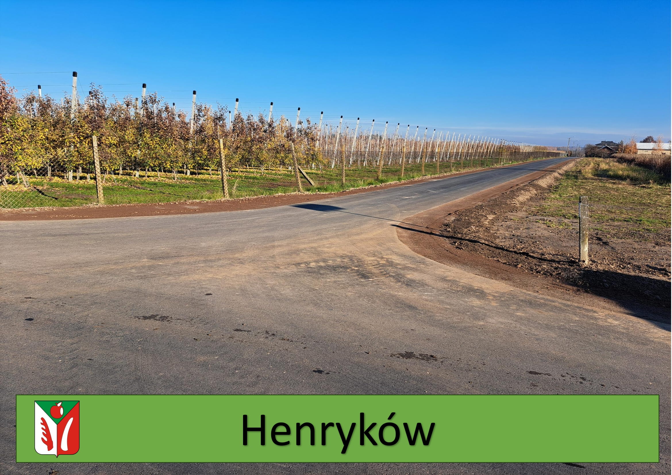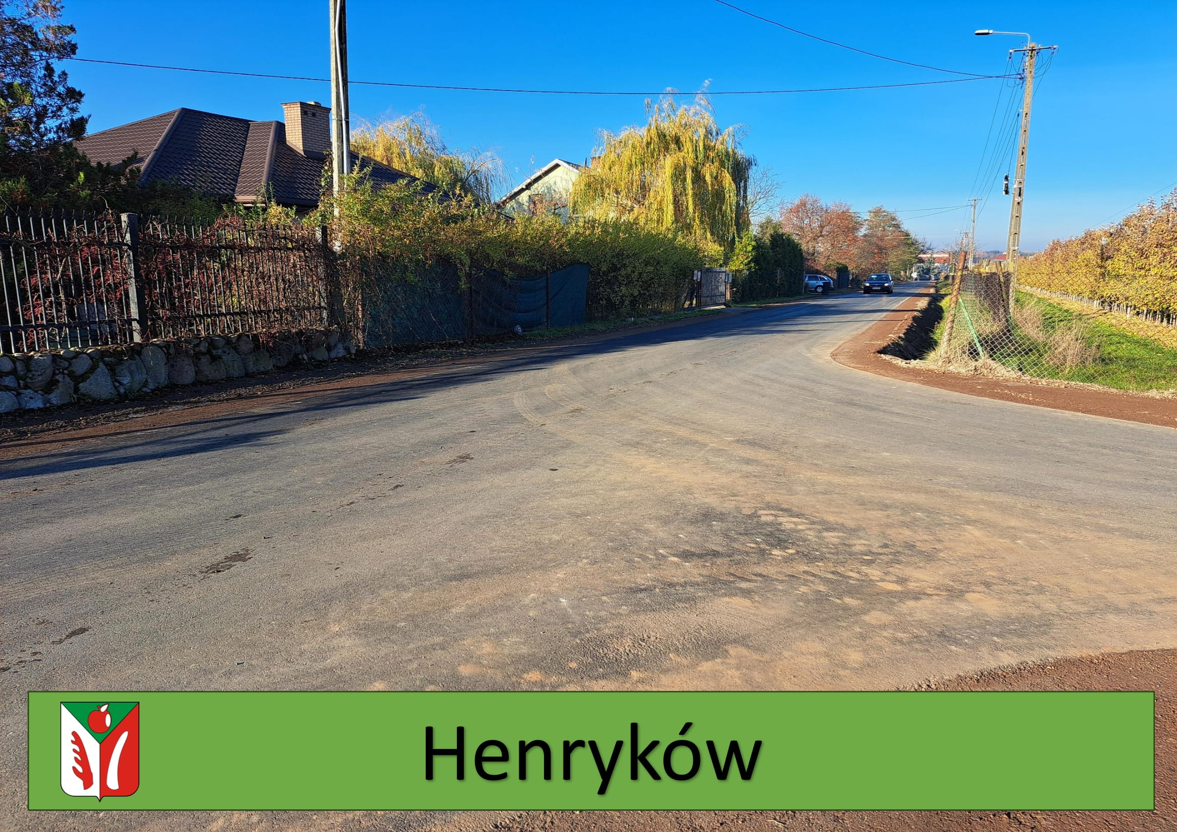 W czwartek, 6 listopada 2025 r. dokonano oficjalnego odbioru drogi gminnej w miejscowości Henryków. Do użytku oddana została wyremontowanadroga o dwóch szerokościach 4m i 3m na odcinku ponad 750 m z obustronnymi poboczami 0,75 cm. Zakres prac obejmował wykonanie: podbudowy w technologii MCE, wykonanie warstwy wiążącej i ścieralnej z mieszanki mineralno-bitumicznej.