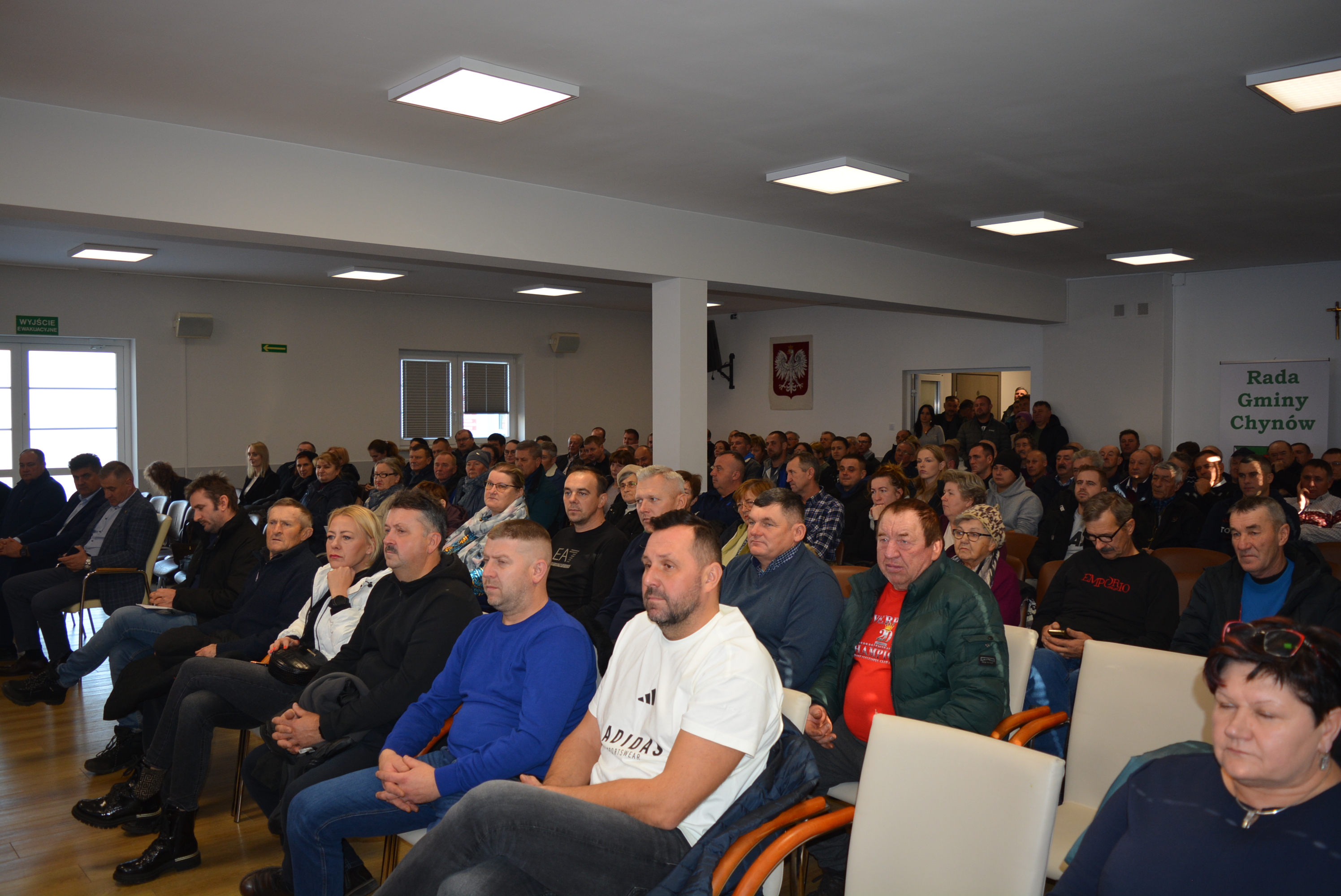 W dniu 28 listopada 20205r. w sali Gminnego Domu Kultury w Chynowie odbyło się spotkanie z rolnikami z terenu gminy. Spotkanie dotyczyło przedstawienia i omówienia form pomocy finansowej dla producenta rolnego w związku ze szkodami, które poniósł w uprawach rolnych spowodowanych wystąpieniem przymrozków wiosennych w 2025 roku.