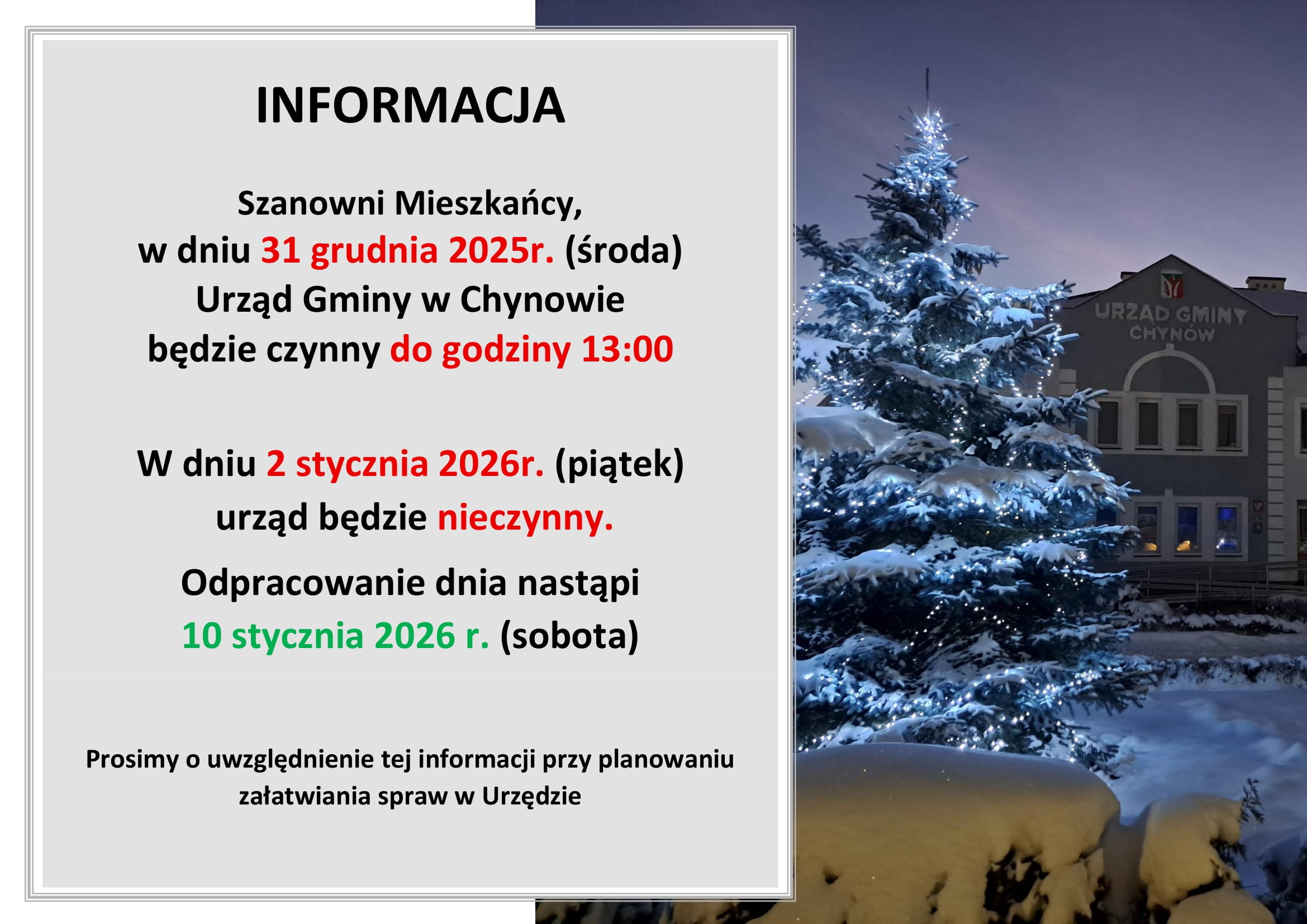 Prosimy o uwzględnienie tej informacji przy planowaniu załatwiania spraw w Urzędzie
