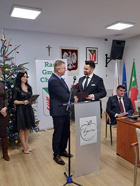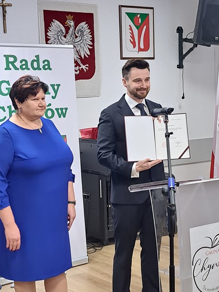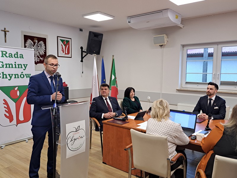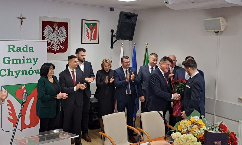 W dniu dzisiejszym odbyło się uroczyste ślubowanie Piotra Bernaciaka, który po wygraniu przedterminowych wyborów objął funkcję wójta Gminy Chynów i został oficjalnie zaprzysiężony na to ważne stanowisko.