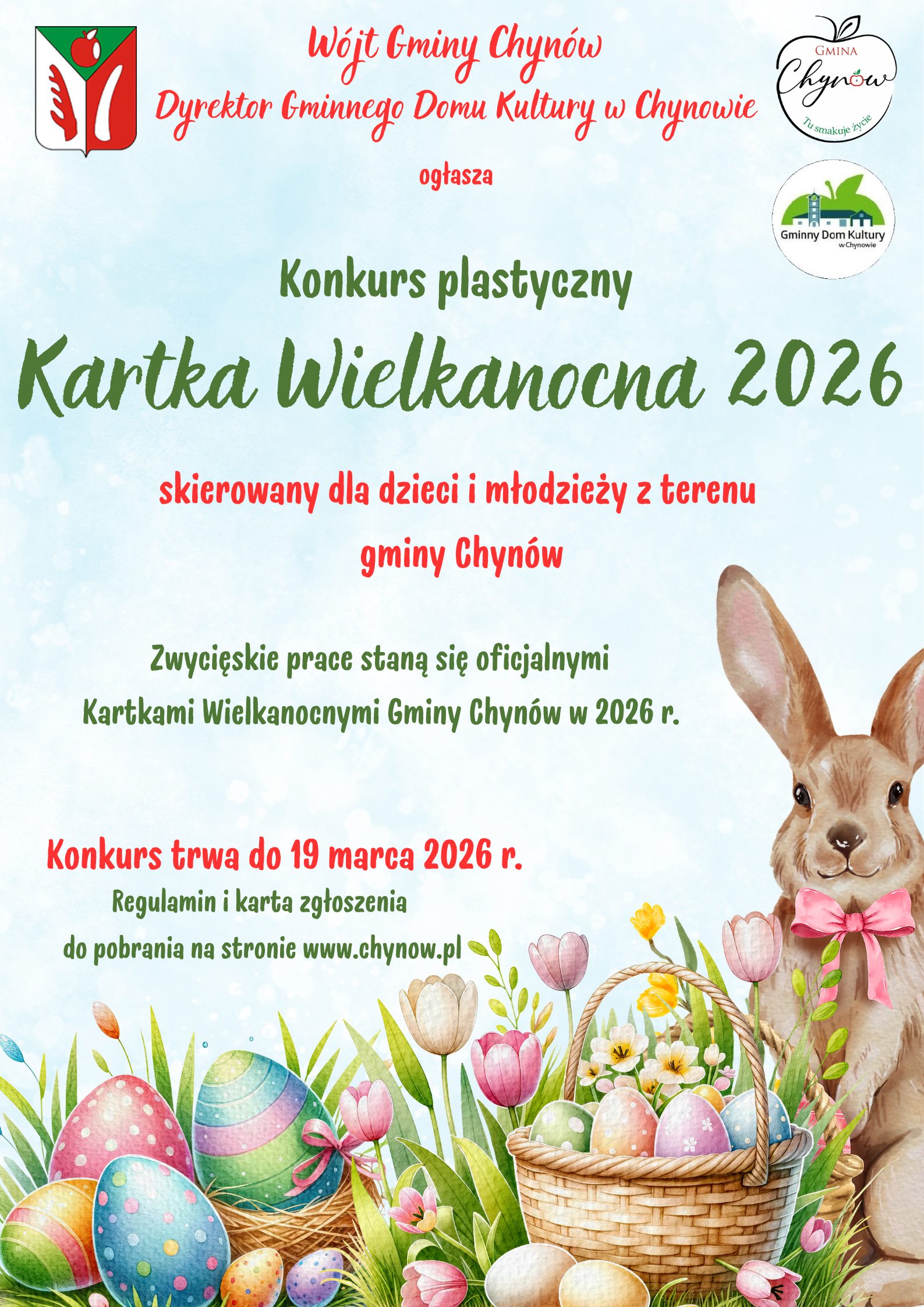 Wójt Gminy Chynów oraz Dyrektor Gminnego Domu Kultury w Chynowie, serdecznie zapraszają do udziału w konkursie plastycznym „ Kartka Wielkanocna 2026”