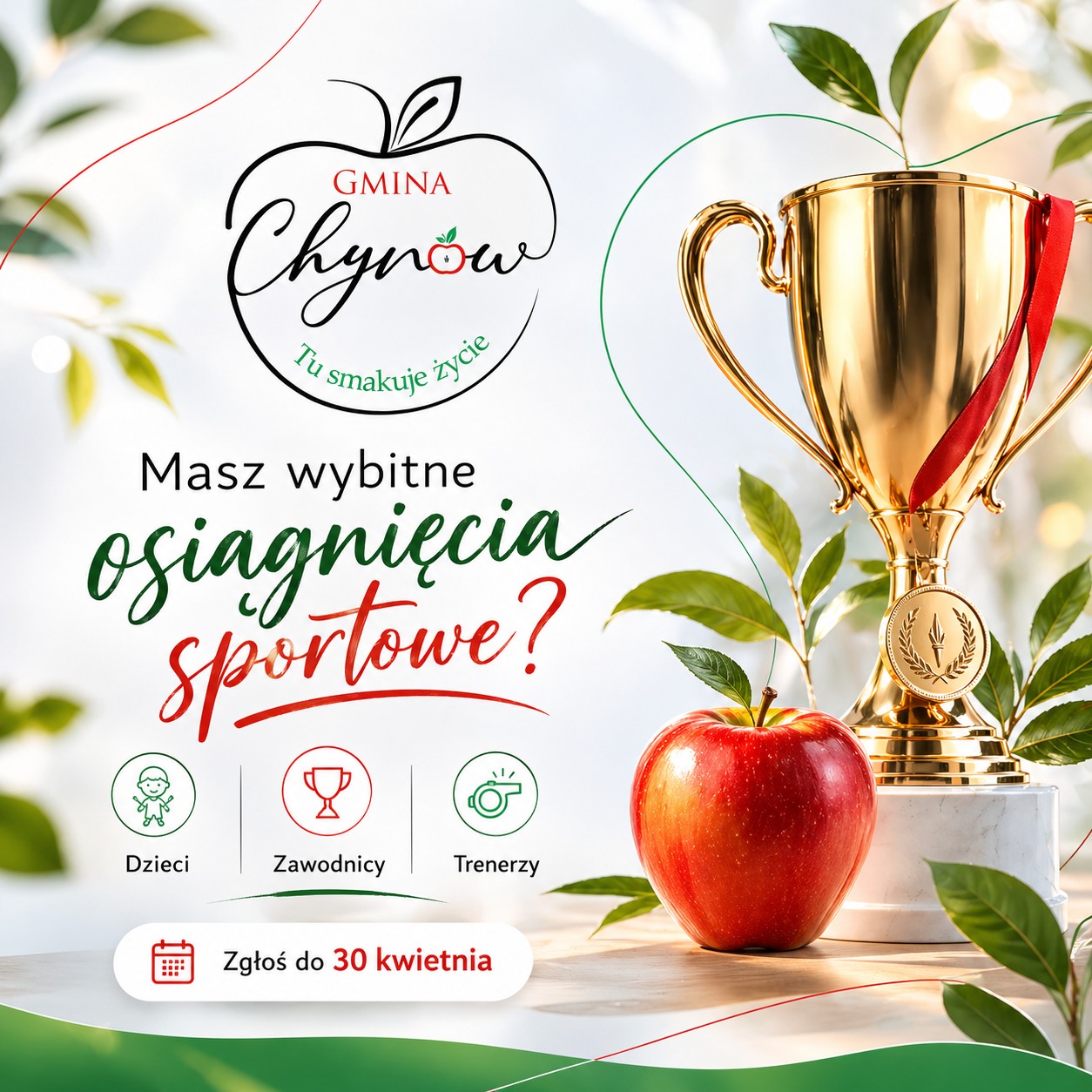 Gmina Chynów przypomina, że do 30 kwietnia można składać zgłoszenia w sprawie przyznania nagród i wyróżnień za wybitne osiągnięcia sportowe dla dzieci, zawodników